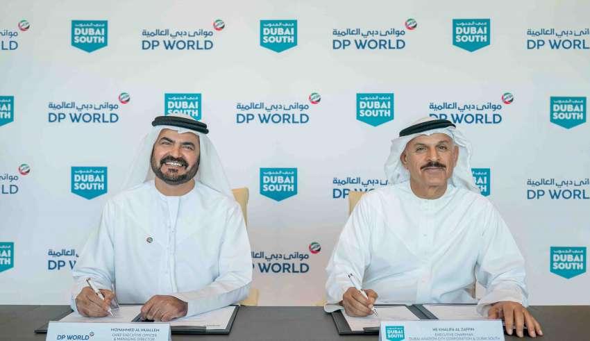 The agreement was signed between H.E. Khalifa Al Zaffin, Executive Chairman of Dubai Aviation City Corporation and Dubai South, and Mohammed Al Muallem, CEO & Managing Director of DP World, UAE Region, and CEO of Jafza at the Dubai South headquarters in the presence of senior management executives and officials of both organizations.