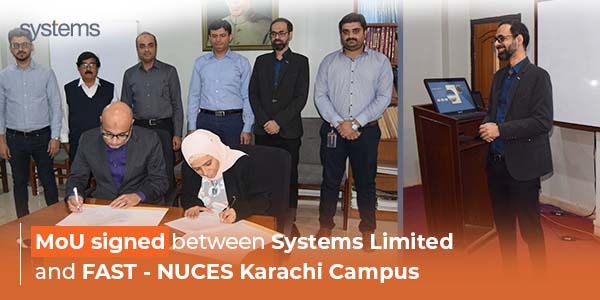 Systems Limited and the National University of Computer and Emerging Sciences (FAST) – Karachi Campus have signed a Memorandum of Understanding (MoU) for collaboration to provide the students with the necessary training and development to meet the expectations of the future talent demands.