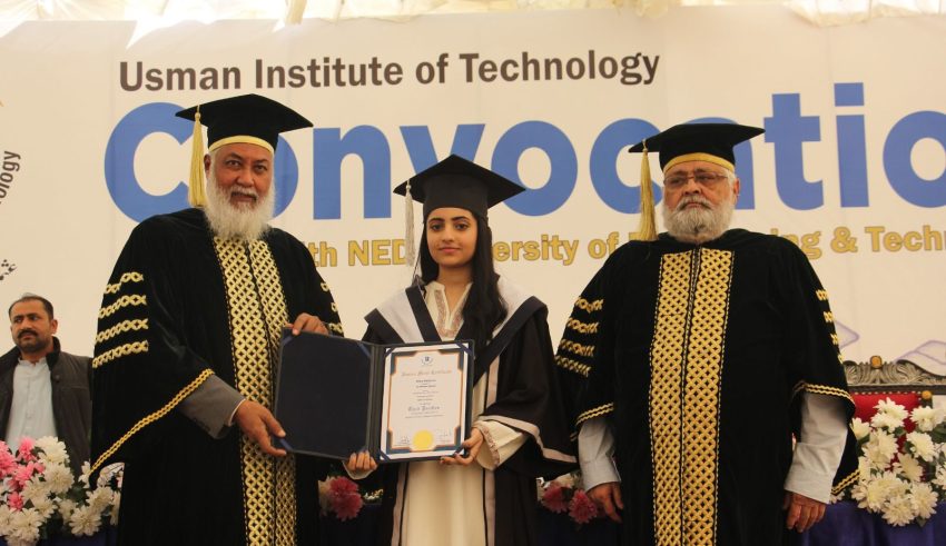 Usman Institute of Technology (UIT) conferred 379 degrees during its recent convocation ceremony. Six students, recognized for outstanding academic performance, were honored with Usman Gold Medals and cash prizes of Rs. 25,000 each.