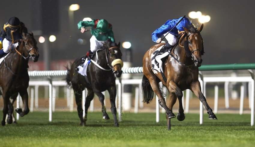 Always in front of the group racing on the nearside, Dutch Masterpiece took an overall advantage at about halfway and powered on strongly, providing Pat Smullen some compensation after his defeat on Rehana. With all the rivals around him beaten with 200m left, Smullen’s mount was left to contend with Mosse and Jordan Sport, who had taken control of those racing on the far side about the same moment the eventual winner led outright, drifted towards the centre. They ran on strongly, as did Yard Line in third and Out Do in fourth but the line came in time for Dutch Masterpiece, a first UAE winner for his trainer.