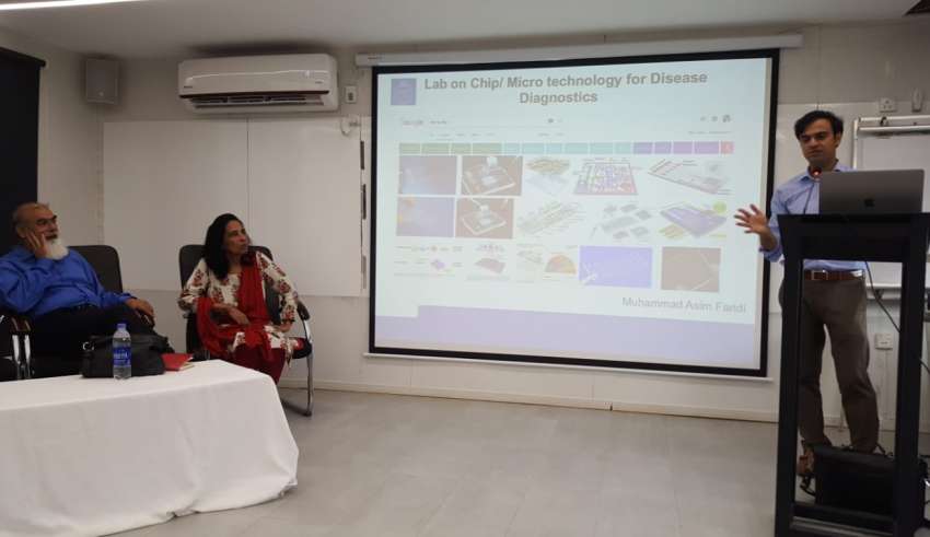KARACHI: A one day seminar was organized at Dadabhoy Institute of Higher Education on ” Laboratory on Chip and Microtechnology for Disease Diagnostics” delivered by DR. M Asim Faridi, who did his BS Biomedical Eng from SSUET, Karachi, MS Biotechnology from Linköping Sweden and PhD in Nano biotechnology from Royal Institute of Technology KTH Sweden. Recently he is affiliated with Gothenburg University Sweden.