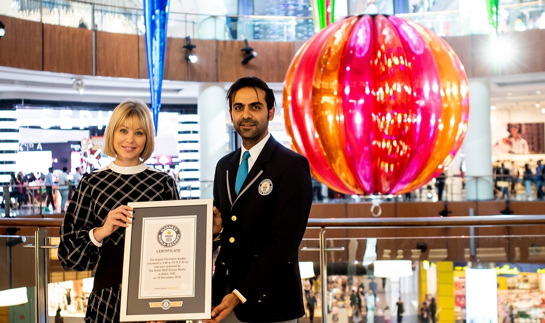 Home The Dubai Mall announces Guinness World Record for the world’s largest festive ornament Rebecca Jobo, Head of The Dubai Mall receives the GWR award