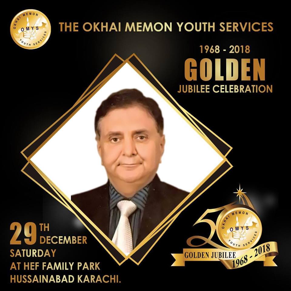 Home Okhai Memon Youth Services to celebrate its golden jubilee on 29th December 2018 Hanif Suleman Jiwani