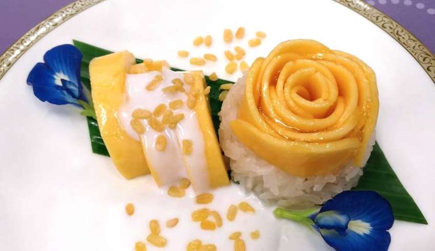 – Royal First Class passengers traveling from Bangkok to Sydney (TG475), Tokyo (TG660), London (TG910), Frankfurt (TG920) and Paris (TG930), will be served Mango with Butterfly Pea Flowers served with Sticky Rice or Siam Amethyst in Cloud (Tubtim Krob).