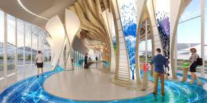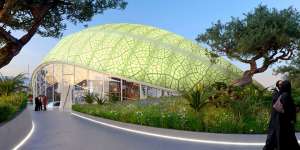 The pavilion’s architecture is inspired by two iconic natural elements: the tree and the leaf. It is designed to offer a place where Expo visitors can reflect on major issues related to sustainable development.