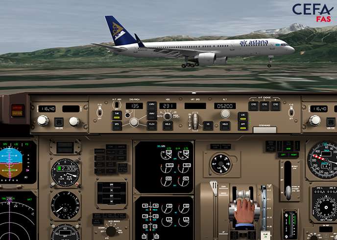 CEFA FAS will be used to recreate flights from the 32 aircraft, based on the raw data from the flight data recorders but also from the FDM (Flight Data Monitoring) System implemented by the airline. Air Astana’s fleet, one of the youngest in the industry, consists of many different aircraft types, from Embraer 190 to Boeing 767, as well as Airbus A320neo and Airbus A321neo. CEFA Aviation’s software shows the flights and the maneuvers of the pilots with all these different cockpit types in a very detailed visualization – even the hands of the pilots and the pedals are represented.