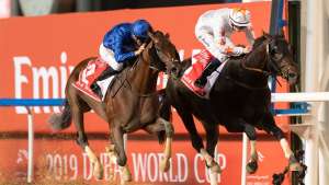 The 5-year-old defied the widest stall bar one to score and was providing trainer Saeed bin Suroor with a remarkable ninth win in the Dubai World Cup in a winning time of 2 minutes 3.87 seconds.