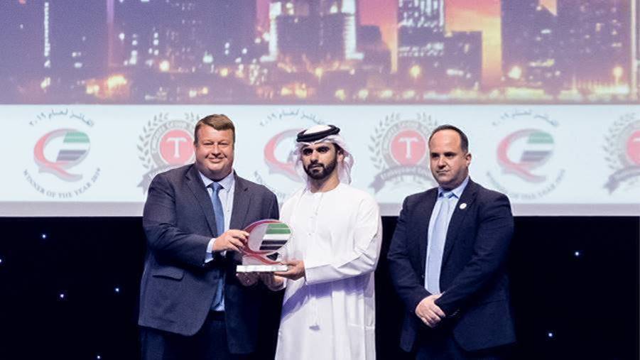 Home Transguard Group wins the Dubai Quality Award Transguard Group Managing Director Greg Ward and Rabie Atie, Vice President, Transguard, receive the Dubai Quality Award from Sheikh Mansoor bin Mohammed bin Rashid Al Maktoum