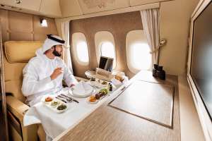 The new suites include seats that recline into a fully flat-bed that manoeuvres into multiple positions and can be placed in a “zero-gravity” state inspired by NASA technology, for a feeling of weightlessness while flying. Passengers can also choose from a multitude of lighting colours and adjust the temperature of their suites for a fully customisable experience. The industry’s first virtual windows can be experienced by customers seated in suites located in the middle aisle. The virtual windows project a view from outside the aircraft using real time fibre-optic camera technology. Emirates also provides binoculars to customers who want to explore the vistas and cities below during their journey. Customers in each suite can also seamlessly communicate with the cabin crew or request room service and in-suite dining through an innovative video call function.