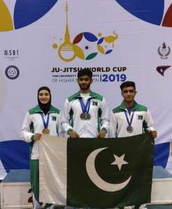 BANGKOK: Pakistani ju-jitsu young players secure 1 Gold and 3 silver medals in the Ju-Jitsu World Cup 2019 for University and Students of Higher Education held in Chiang Mai – Thailand from 10-12 April 2019.