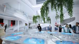 The interior of the Emirates Pavilion includes an enclosed floor plan which allows natural daylight to enter the space, reducing energy consumption. Experiential content will take centre stage, encouraging interaction throughout the visit. The second floor of the Emirates Pavilion will house an auditorium for speaker sessions and industry events, and the third storey houses a dedicated skygarden for visitors to enjoy the natural surroundings and green, open spaces.
