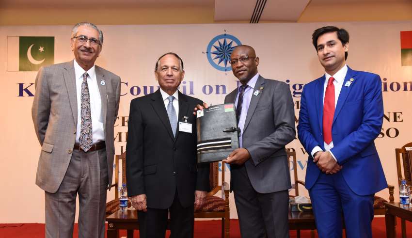 Ambassador of Burkina Faso was presented with crest of Karachi Council on Foreign Relations by Vice Chairman Khalid Mir. The ambassador also presented souvenirs to Vice Chairman KCFR Khalid Mir and Saif-Ur-Rehman, Director Marketing, Galaxy Pharma. Says in press release