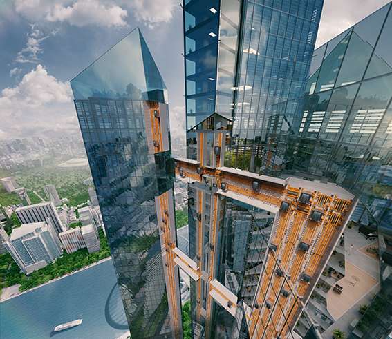 MULTI creates unlimited new design possibilities and building efficiencies for the cities of tomorrow. It removes height limitations and can be used for skybridges to shuttle from one building to another. It can be also used to open up new directions of travel in underground transport hubs.