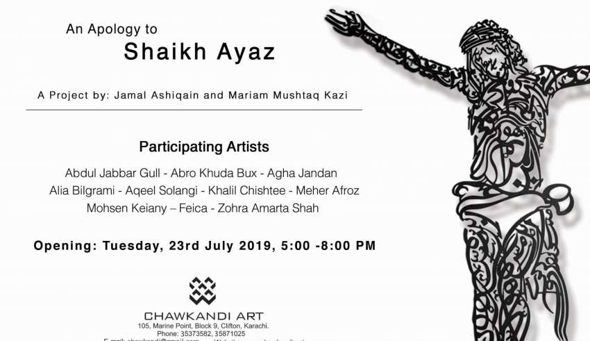 KARACHI: Yet another exhibition which seems to be a completely out of the box concept opens at The Chawkandi Art Gallery which is one of the most prestigious and the oldest of all the galleries of Karachi, titled “An Apology to Shaikh Ayaz “on Tuesday, 23rdof July 2019.