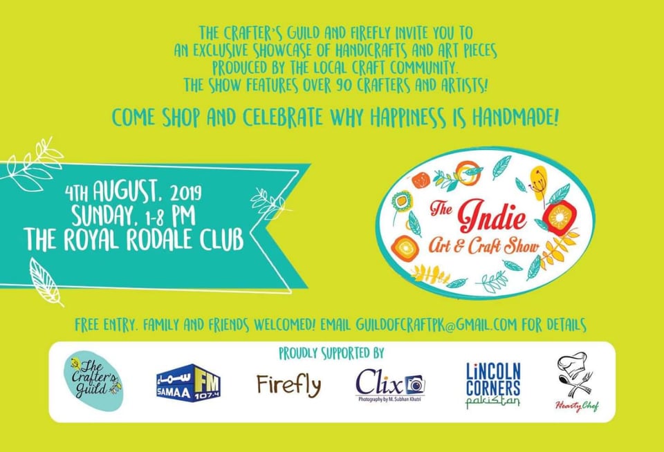 KARACHI: The Crafter’s Guild and Firefly is organiseing “The Indie Art and Craft Show’ will be held on Sunday, August 3, 2019 at the Royal Rodale Club, Khayaban e Sehar, Phase 6 DHA from 1 to 8 pm to support local crafters.