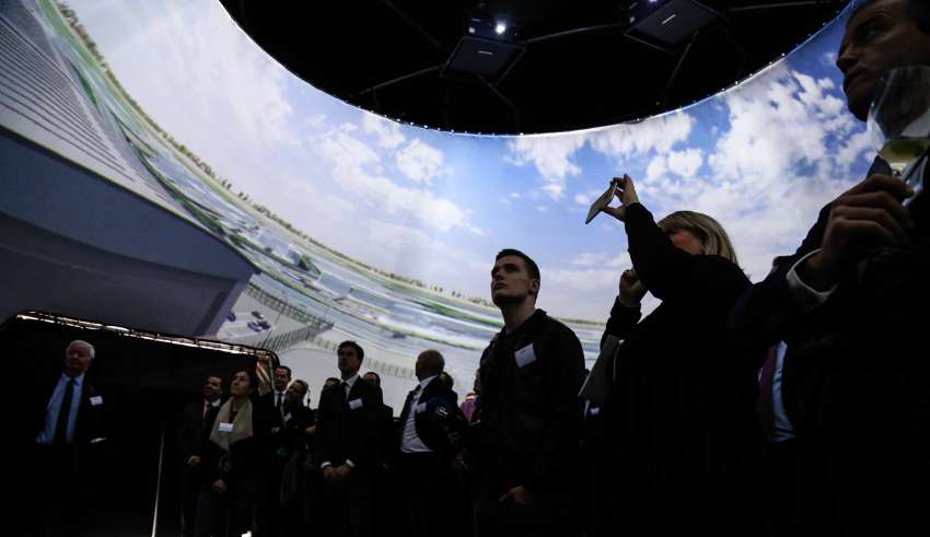 A stand-out feature of this year’s Epson stand is a 180-degree shared virtual reality (VR) projection space, housed inside a custom created structure, providing an immersive projection experience. Three Epson EB-L1755U laser installation projectors with ELPLX02 ultra-short throw lenses are used to display the VR content. The projection space acts like a giant VR headset and provides visitors with a breathtaking shared VR experience.