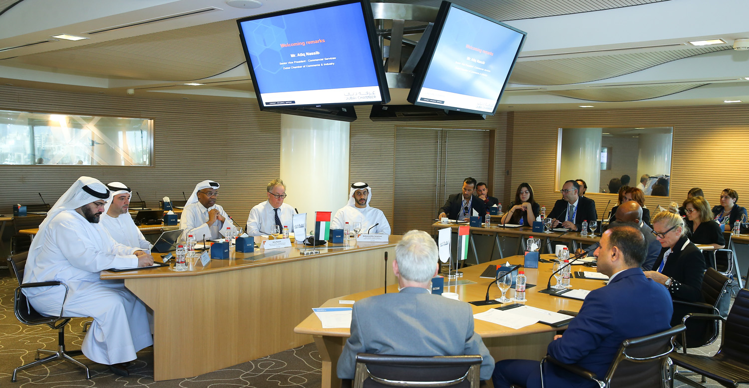 Home Dubai Chamber hosts high-level European business delegation Atiq Juma Nasib, Peter Bishop, Hassan Al Hashemiand Omar Khan during the meeting