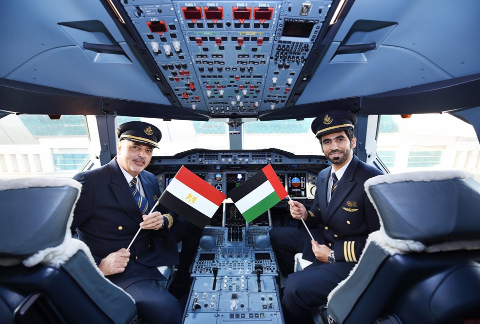 Home Emirates A380 touches down in Cairo The first Emirates A380 flight was led by Egyptian Captain Hesham Essawy and UAE National First Officer Abdullah Alyammahi