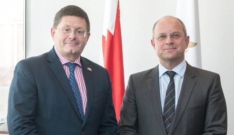 MANAMA: H.E. Mr. Roderick Drummond the new British Ambassador to the Kingdom of Bahrain was recently welcomed to Gulf Air’s headquarters where he met with the national carrier’s Chief Executive Officer Mr. Krešimir Kučko. During the meeting, Mr. Kučko congratulated H.E. Mr. Drummond on his new post and they discussed Gulf Air’s incoming fleet and other recent developments of the airline.