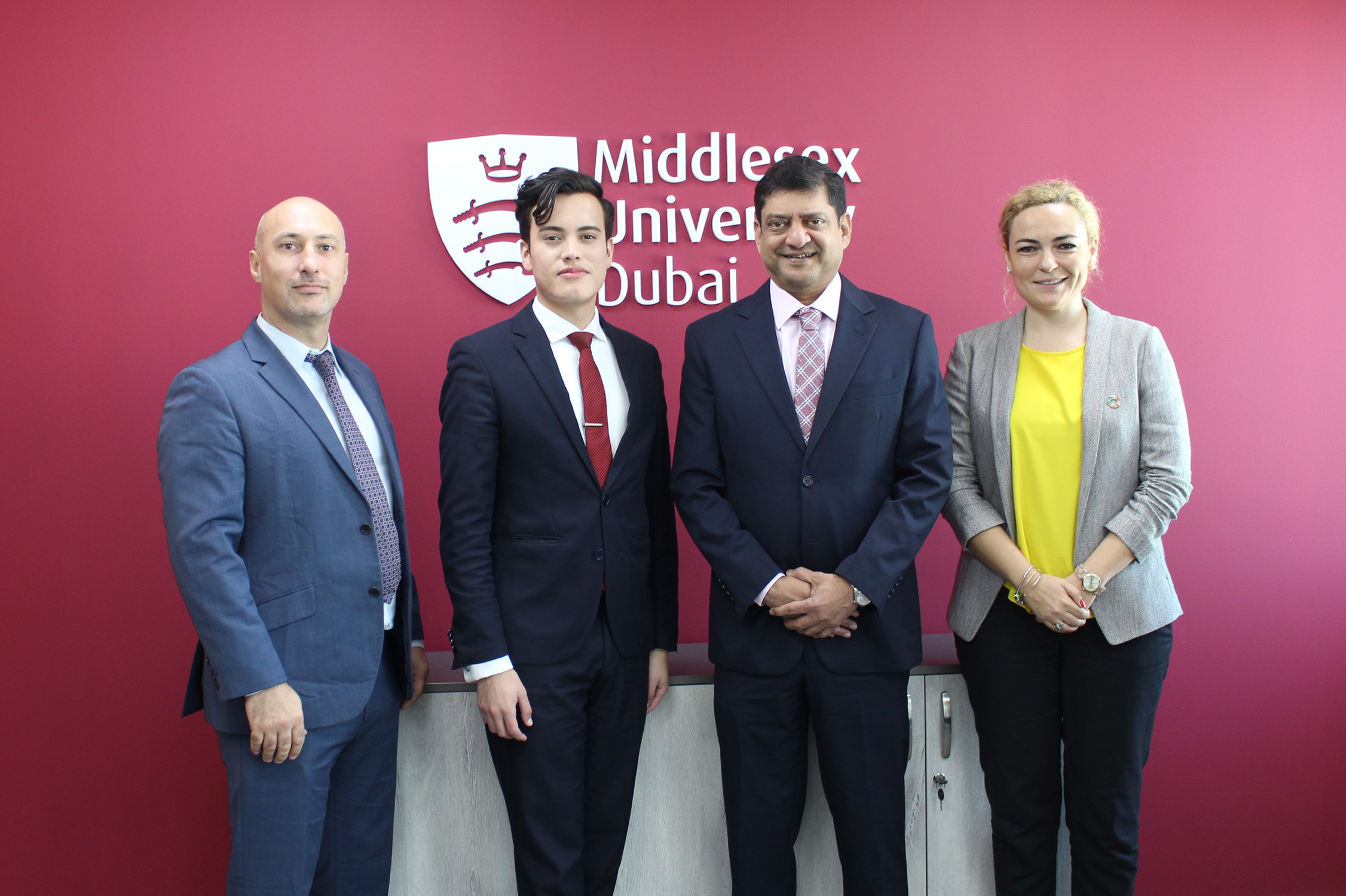Home Youth Activist Juan Pablo inspires change at Middlesex University Dubai Dr Cedwyn Fernandes and Middlesex University Dubai faculty with Juan Pablo