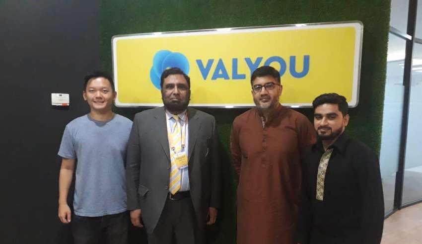 KUALA LUMPUR: Dr. Tariq Masood, Joint Secretary, Ministry of Science of Technology, Government of Pakistan (second from left) visited Valyou Office in Malaysia. He was briefed about the recent Easypaisa – Valyou wallet to wallet remittance backed by Alipay’s Blockchain Technology.  Valyou Team members from left, Eric Yu – Product Executive, Fahad Rehman – Head of Technology and Mohsin Zaman – Sales Lead, Business Development.