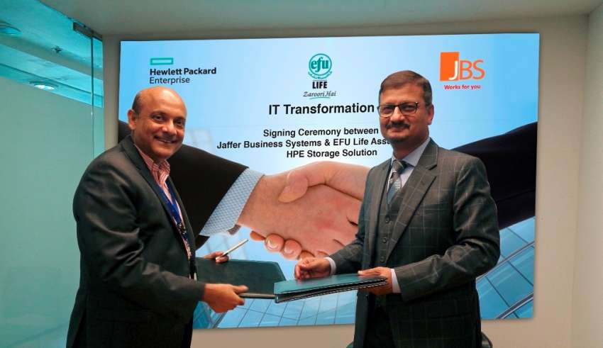 KARACHI: Jaffer Business Systems (JBS) and EFU Life Assurance recently signed a Memorandum of Understanding (MoU). According to the MoU, JBS has partnered with EFU Life for providing Hewlett Packard Enterprise (HPE) Storage Solutions that include HPE 3PAR, Storage Switches and HPE Backup Appliance.