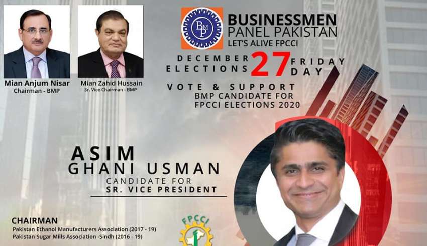 Now Asim Abdul Ghani will be contesting FPCCI’s 2020 elections for the post of senior vice president as a nominee of Businessman Panel (BMP) against United Business Group’s (UBG) nominee Mr. Hanif Gohar.
