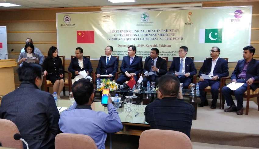 They were speaking at the press conference held at the Golden Jubilee Hall of the International Center for Chemical and Biological Sciences (ICCBS), University of Karachi on Saturday. Director ICCBS Prof. Dr. M. Iqbal Choudhary, Prof. Dr. M. Raza Shah, the in-charge of the clinical trial project, and Chinese officials, including Mr. Guo Chunshui, Commercial Counselor of Consulate General in Karachi, Mr. Jian Zhang, Vice Chairperson of Hunan Provincial Committee of CPPCC, Chairperson of Hunan Federation of Industry and Commerce, President of Hunan General Chamber of Commerce, and Mr. Feibao Chen, President of Hunan Anbang Pharmaceutical Company addressed the conference.