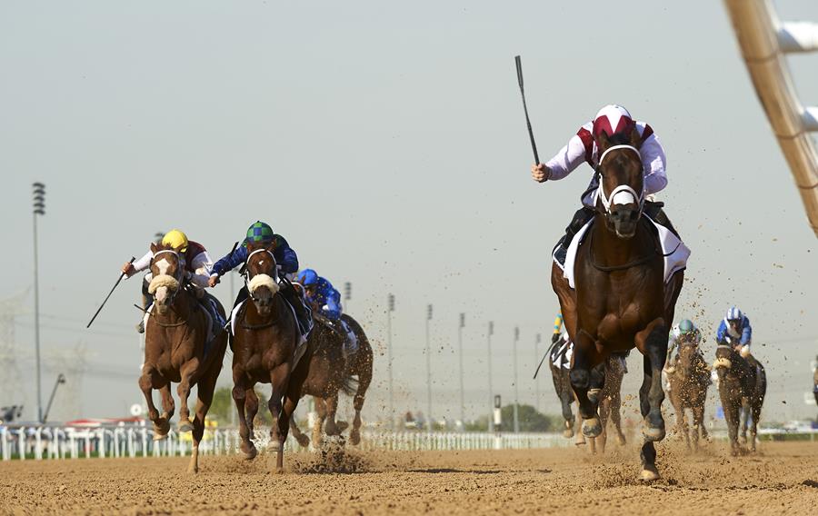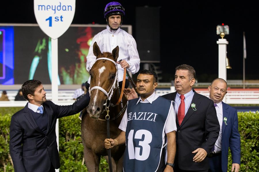 DUBAI: In a dramatic finish of the Azizi Mina Handicap, leading trainer Doug Watson won his 600th race in the UAE when Cool Silk Partnership’s Midnight Sands (pictured below) won in the final yards by a short head over Breeders’ Cup Dirt Mile (G1) alumnus Ambassadorial. The milestone comes 10 weeks after Watson made history by sweeping an entire card of six races—the first trainer to either sweep a card or win six races on one card in the UAE—on Nov. 7. Midnight Sands, admittedly one of Watson’s favourite horses, won his fourth race from five UAE starts and appears a star on the rise.
