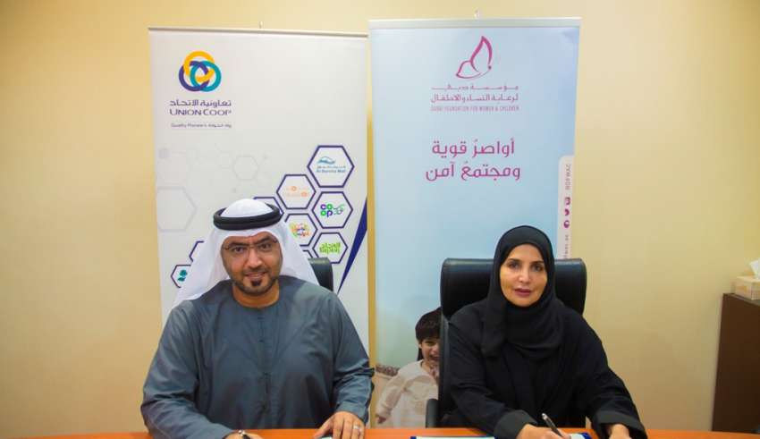 DUBAI: The largest Consumer Cooperative in the UAE, ‘Union Coop’ recently signed 2 memorandum of understanding with ‘Dubai Foundation for Women and Children’, the first non-profitable authorized humanitarian organization that provides shelter and care in the UAE to the victims of domestic abuse, violence, child abuse and the victims of human trafficking. The first MoU states golden sponsorship for the World Day Campaign to reduce the violence against women and raise awareness about the issue, and the second concerns the expansion of green homes project that will contribute to providing a sustainable source of income to assist these groups, which are looked after by the foundation.