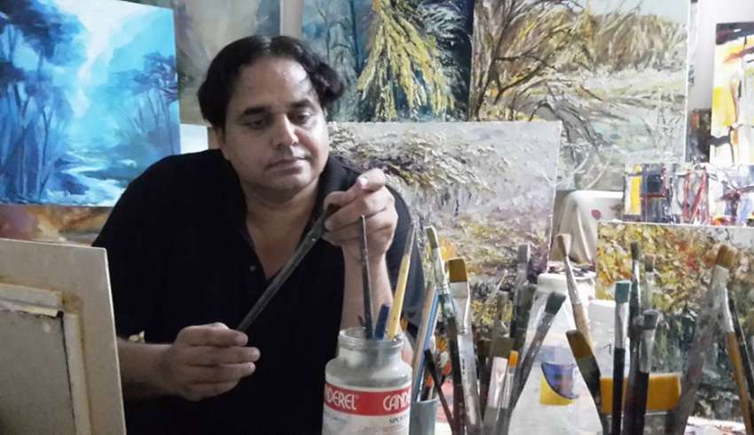 Asim Amjad is a professional artist and is also the pioneer of Art & Drama Therapy in Pakistan. He was born in Lahore and has degrees from Pakistan National Council of the Arts (PNCA), Islamabad and Lahore Arts Council. In addition to fine-art degrees he also has a Master’s degree in Psychology (M.Sc. Psychology). He said; “l believe art is the energy of life and sensation of beauty. As an psychic energy, It creates self awareness and insight from which an individual will be able to enhance his/her abstract thinking”.
