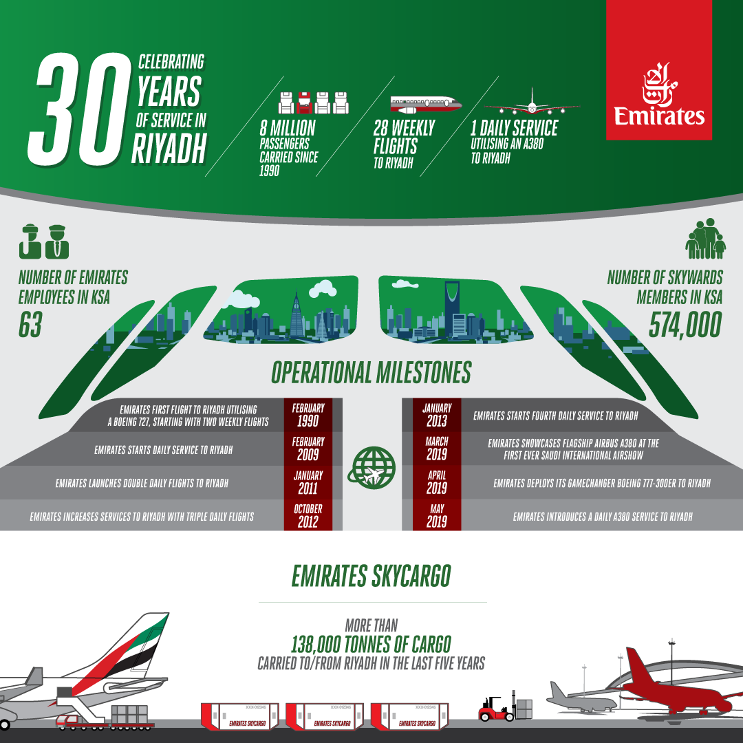 Home Emirates Airline celebrates 30 years of connecting Riyadh to the world Emirates-infographic-Riyadh-30th-anniversary