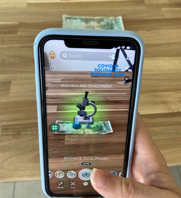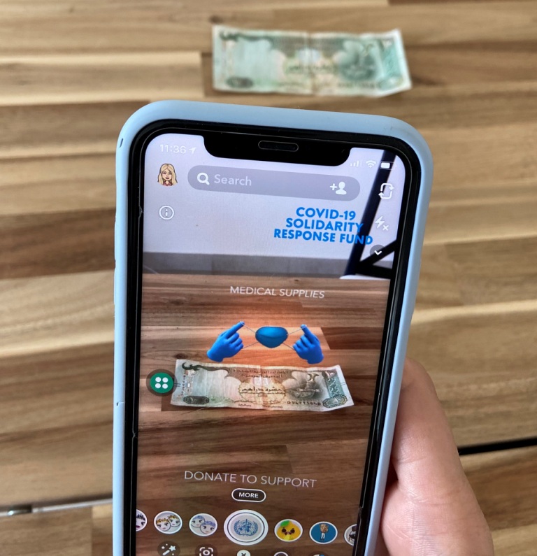 The new lenses allow Snapchatters to scan real-life objects to unlock a special AR experience. When a person views an AED10/SAR10 note, for example, and taps on it in the Snapchat camera, an AR experience will trigger to show how a potential donation could support the WHO’s immediate response efforts. Snapchatters will be able to access these lenses in several ways, including in the lens carousel, via Snapcode, or by using the camera’s Scan function.