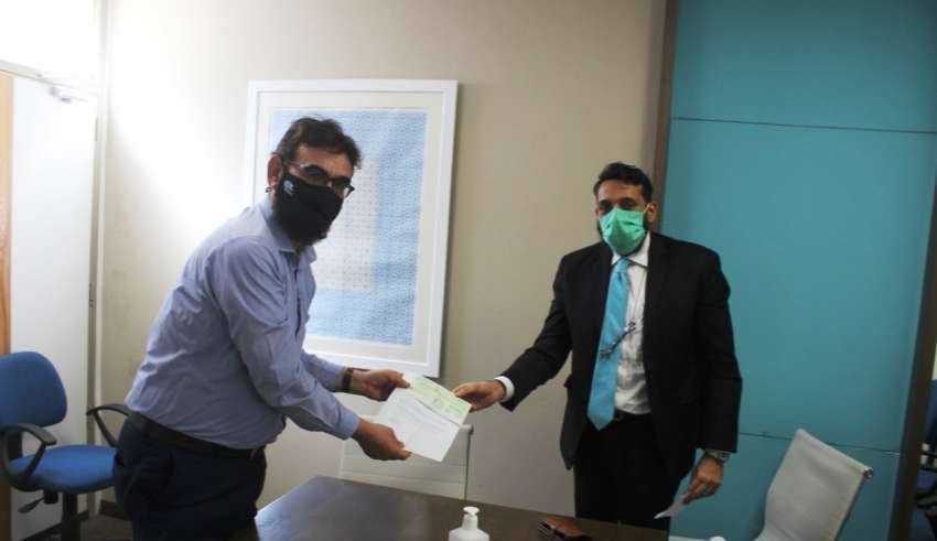 A cheque was handed over by CEO IMC, Ali Asghar Jamali to CEO Indus Hospital, Dr. Abdul Bari Khan in a brief ceremony held at Indus Hospital.