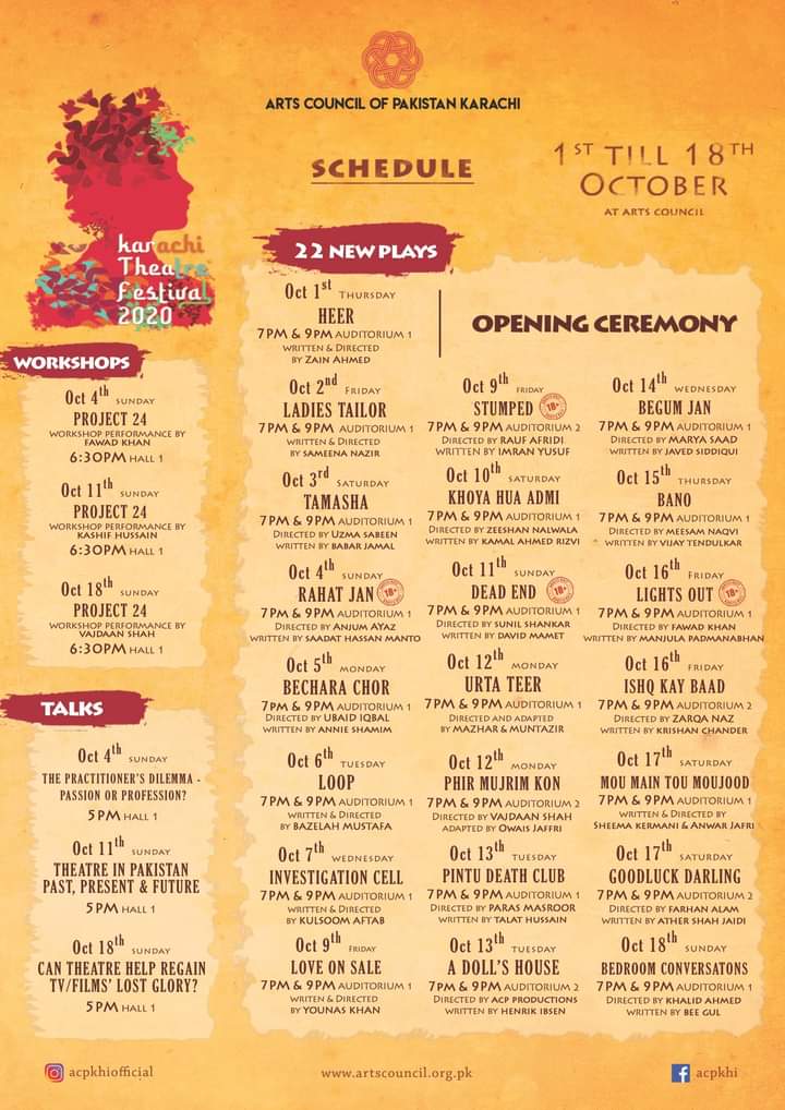 It should be noted that the entertaining Karachi Theatre Festival consisting of 24 exciting new theatre plays, performances, interesting discussions, debated and 3 interactive workshops.