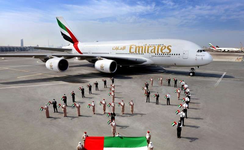 Emirates airport operations employees at the hub also joined in the celebrations, holding their flags and making a formation in the number ‘49’ in front of an aircraft at Dubai International Airport.