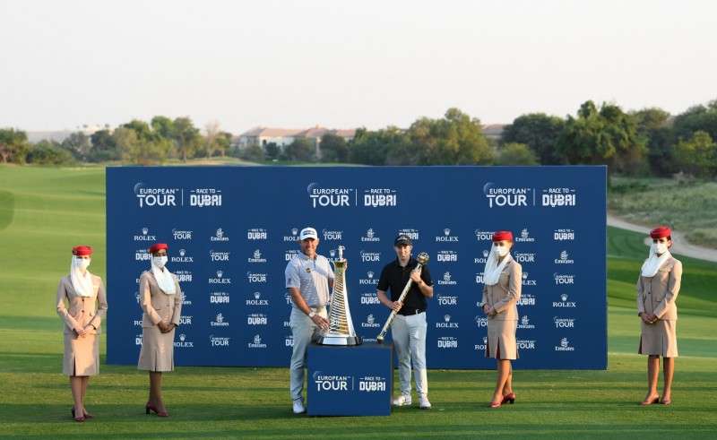 Emirates Cabin Crew participated in the socially-distanced prize presentation with the winners, along with HH Sheikh Mansour bin Mohammed bin Rashid Al Maktoum, Chairman of Dubai Sports Council and Patron of the DP World Tour Championship and European Tour.