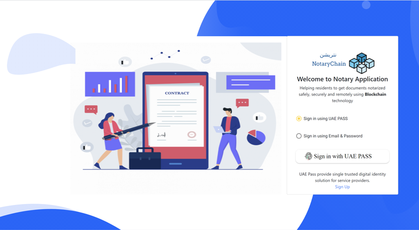 Available as a cloud and on-premise solution, NotaryChain provides advanced features including single sign-on using national identity (UAE Pass), digital signatures, electronic seal, integrated artificial intelligence verification for Emirates ID, QR code-based instant verification of notarized documents, built-in templates for notary documents, and more.