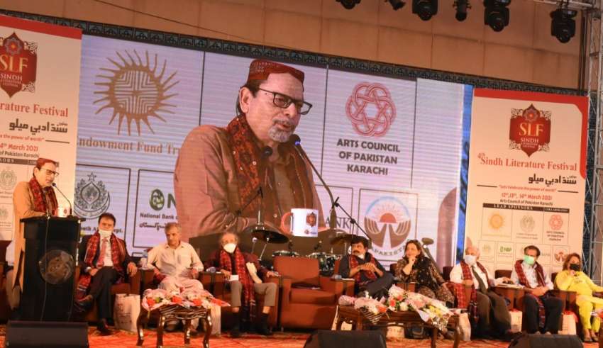 This is the fourth edition of the annual Sindh Literature Festival organized by the Sindh Literary Foundation with the mutual cooperation of the Arts Council Karachi sponsored by the Endowment Fund Trust and Culture department government of Sindh.