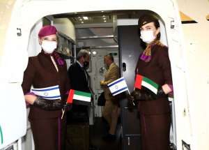Home Etihad Airways first scheduled flight from Abu Dhabi lands in Israel Etihad-cabin-crew-on-board-the-first-scheduled-flight-to-Tel-Aviv