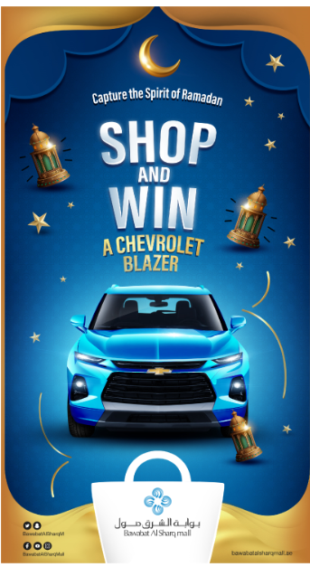 Shoppers can shop for AED 200 at any store or AED 400 at Carrefour for a chance to win a Chevrolet Blazer. Those who shop on the first floor can double their chances to enter the vehicle draw that will take place on 16th May 2021.