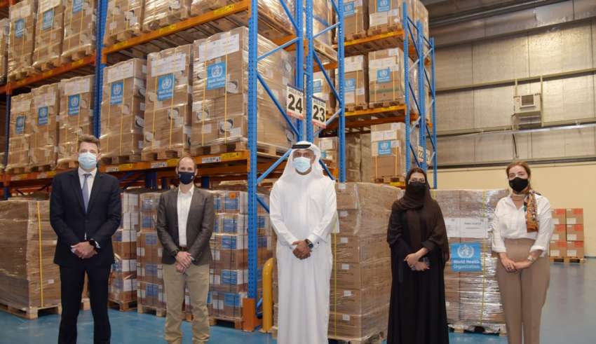 (Left to right): Robert Blanchard, WHO Logistics Hub in Dubai; Nabil Sultan, Emirates Divisional Senior Vice President, Cargo;Hanan Al Marzooqi, Head of Communications and Marketing IHC; Bouran Suleiman, Head of Logistics and Humanitarian Initiatives