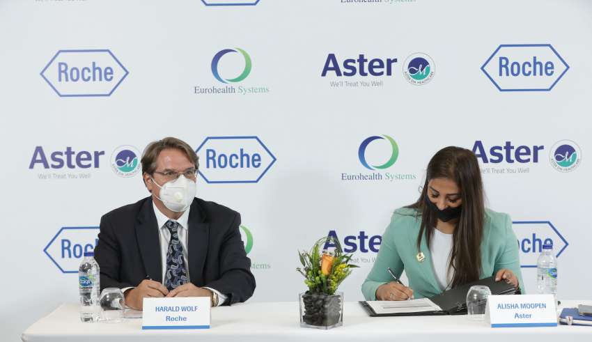DUBAI: Aster DM Healthcare, the largest integrated healthcare provider in the Middle East, signed a Memorandum of Understanding (MoU) with Roche Diagnostics, the world leader in biotechnology, as the strategic partner across the United Arab Emirates (UAE), the Kingdom of Saudi Arabia (KSA), Qatar and Oman.