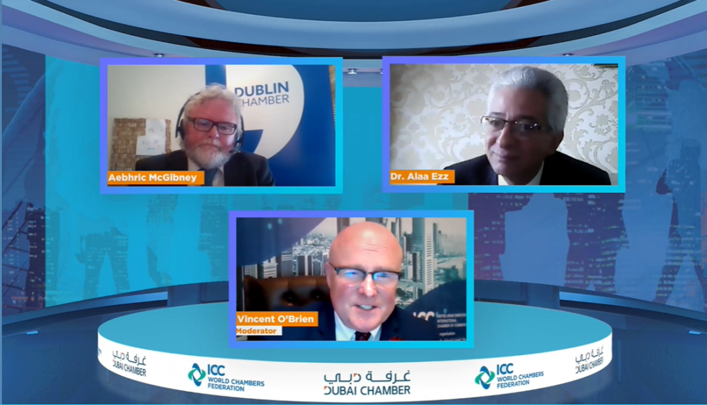 Their comments came during the latest Chamber Connect Series event, which was joined by 138 delegates from 39 countries. Speakers included H.E. Hamad Buamim, President & CEO of Dubai Chamber of Commerce and Industry, and Chair, ICC World Chambers Federation; Dr. Alaa Ezz, Secretary General, Federation of Egyptian Chambers of Commerce (Egypt); and Aebhric McGibney, Director of Public and International Affairs, Dublin Chamber of Commerce (Ireland).