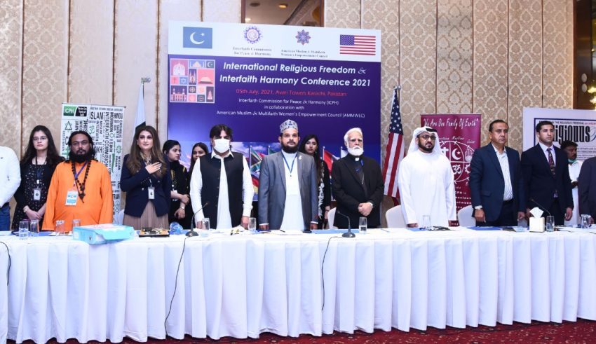 Islam teaches us tolerance, humility, and humbleness and we can establish peace and harmony in our personal lives, society and the world by following the teachings of the Holy Prophet (PBUH), scholars and speakers at the concluding Interfaith Commission for Peace and Harmony (ICPH), organized an International Religious Freedom and Interfaith Harmony Conference 2021 with the collaboration of American Muslim and Multifaith Women’s Empowerment Council, at Avari Hotel, Karachi on 5th July 2021. Religious scholars from various beliefs such as the representatives of Christian, Muslim, Hindu, Sikh, Paarsi and Bihaai communities, social activists, diplomats of various countries and people from different walks of life participated in the conference. Number of International dignitaries joined the event virtually and shared their views on this important and sensitive topic which is the foundation to bring peace in the world. The program was officially started with the readings from the Holy books of all the different faiths to give them equal respect and love.