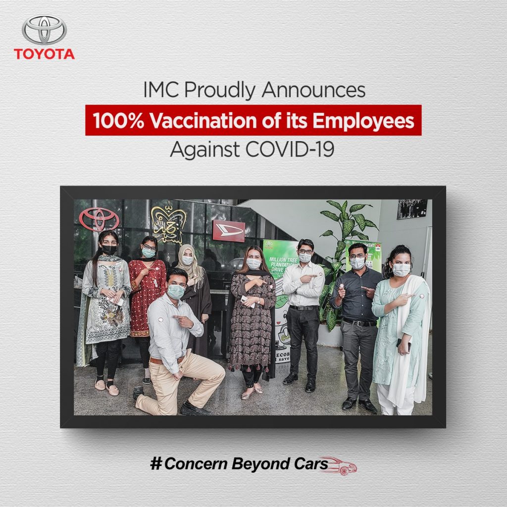 Indus Motor Company (IMC) in collaboration with the Government has initiated the COVID-19 Vaccination Drive for its workforce of 4,000 regular and contract employees. The vaccination process was completed over a period of four days.