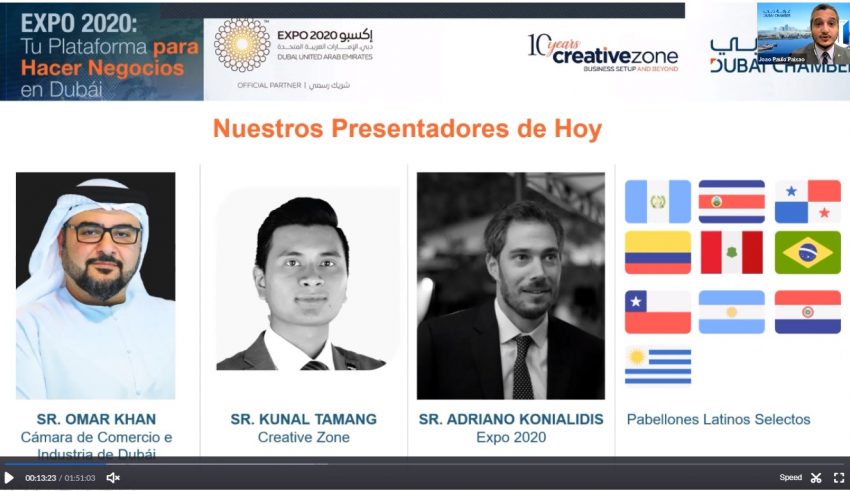 Dubai Chamber’s representative offices in Latin America recently organised a webinar to promote Expo 2020 Dubai as a platform to doing business in Dubai and educate businesspeople from the region about the competitive advantages that the emirate offers.