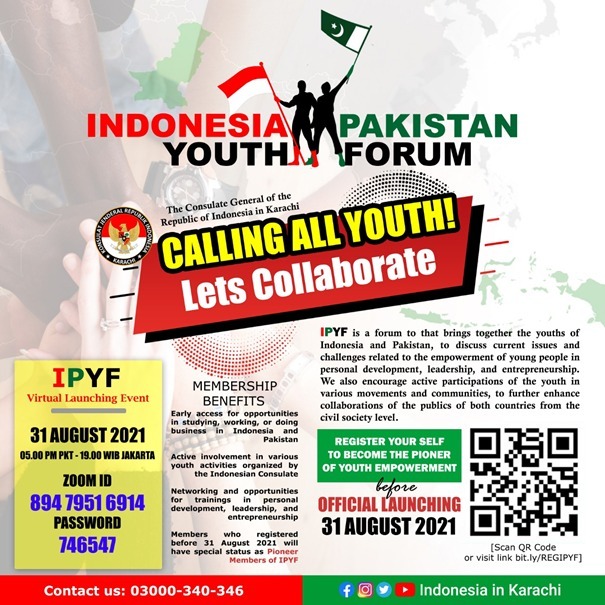In light of this spirit, we are planning to launch “Indonesia – Pakistan Youth Forum” (IPYF) on 31 August 2021 as part of our efforts in engaging the youth of Indonesia and Pakistan, to promote cultural understanding and re-affirming the strong ties between the previous generation of both countries.