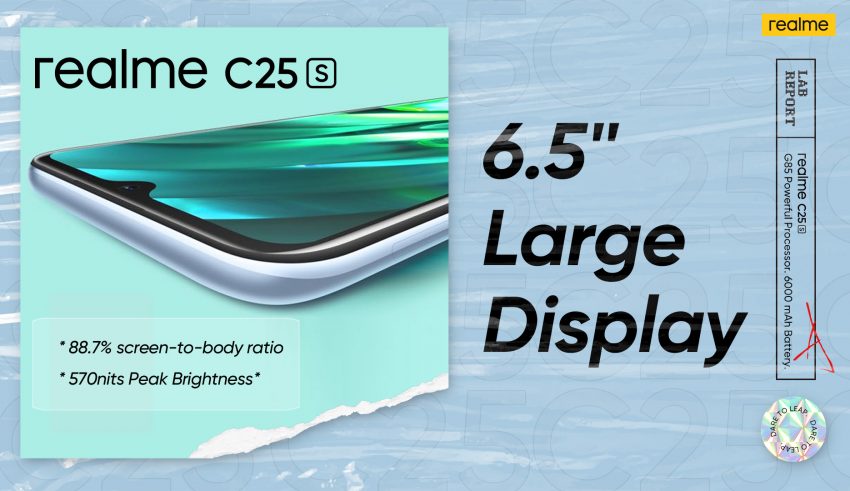 You’re into gaming or spending time gorging on video streams on different apps – but what’s that one thing that keeps you engaged? The phone’s display. It has to be picturesque and large, else the experience isn’t fully immersive. With realme C25s, you get a 6.5-inch screen space that a lot to handle. It captures your most vivid imaginations while socializing, or keeps you hooked during your favourite gameplay. It’s a wide field of view allowing for pretty less noise and visual disturbance.
