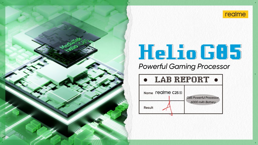 The performance of a powerhouse is what realme C25s promises right from the start. It’s fitted with a MediaTekHelio G85 Gaming Processor that makes gaming an exhilarating experience. Since gaming is all about crisp graphics and no lag, Helio G85 keeps the fun running and doesn’t let you get bored with lag-free and super smooth gameplay.